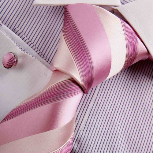 The Detailed Description of Pink Silk Ties Men Hot Pink Stripes Woven Silk Neckie Cufflinks Gift Box Set Y&G Relax Necktie Set A8022Features
