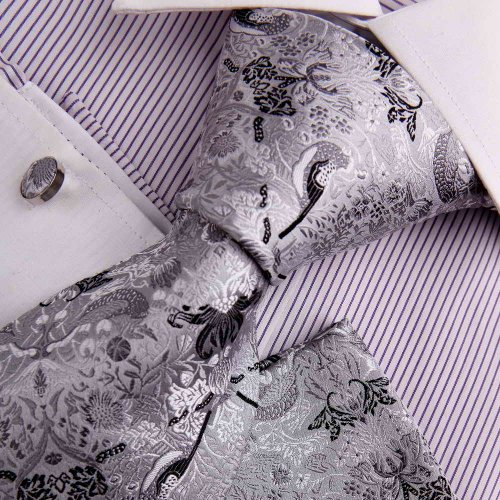 The Detailed Description of Silver Funties For Men Cheap Ties For Men Silver Patterned Woven Silk Tie Handkerchiefs Cufflinks Gift Box Set Y&G Excellent Necktie Set H7026Features