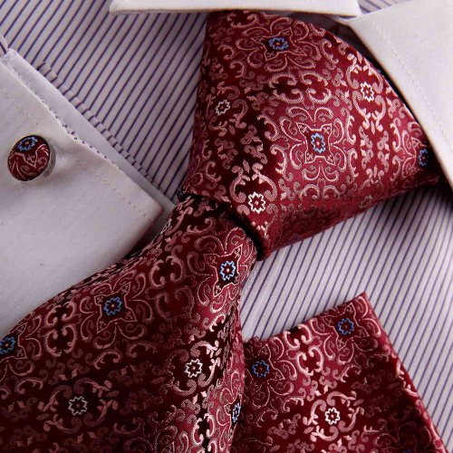 The Detailed Description of Red Mens Tie Gift Ideas for Men Indian Red Patterned Woven Silk Neckie Hanky Cufflinks Present Box Set Y&G Mens Tie Set H7053Features