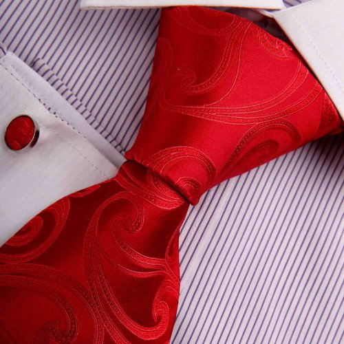 The Detailed Description of Red Mens Warehouse Tie Wedding Crimson Paisley Woven Silk Neckie Cufflinks Present Box Set Y&G Fashion Necktie Set A7040Features