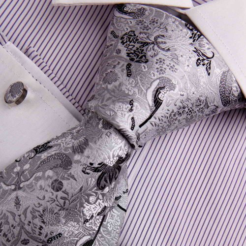 The Detailed Description of Silver Mens Tie Business Silver Patterned Woven Silk Neckie Cufflinks Gift Box Set Y&G Fashion Tie Set A7026Features