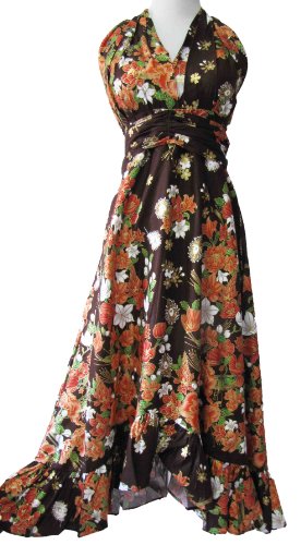 The Detailed Description of the grace eboutique 50's Strapless Floral print bow tie halter mermaid frill wedding prom formal gown dress , Size Small - Medium, BrownFeatures