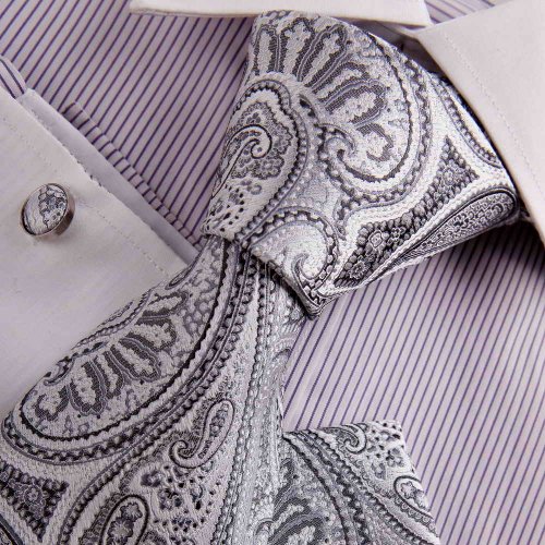The Detailed Description of Silver Mens Warehouse Tie Silver Paisley Woven Silk Neckie Handkerchiefs Cufflinks Gift Box Set Y&G Fashion Tie Set H8014Features