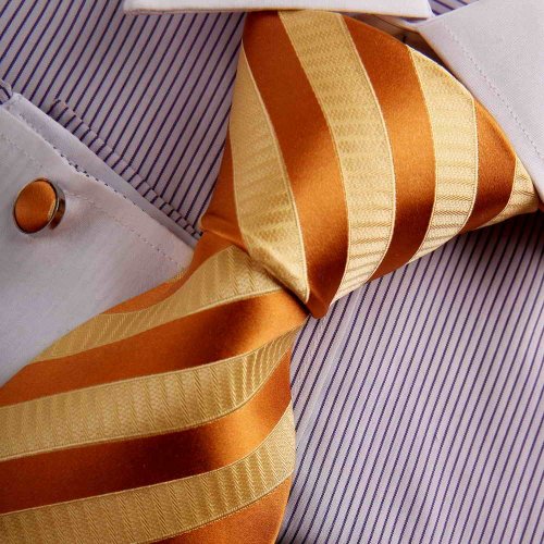 The Detailed Description of Orange Silk Ties Men Birthday Orange Stripes Woven Silk Neckie Cufflinks Present Box Set Y&G Perfect Necktie Set A7048Features