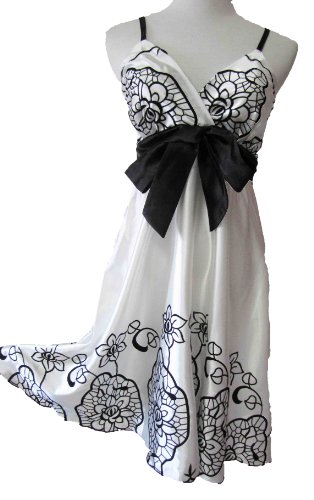 The Detailed Description of the grace eboutique Hippie Party straps wedding summer bow tie prom dress, Size S- L, white blackFeatures