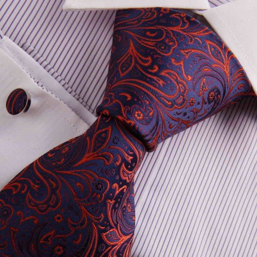 The Detailed Description of Blue Dress Ties Men Party Midnight Blue Patterned Woven Silk Neckie Cufflinks Present Box Set Y&G Perfect Necktie Set A7060Features