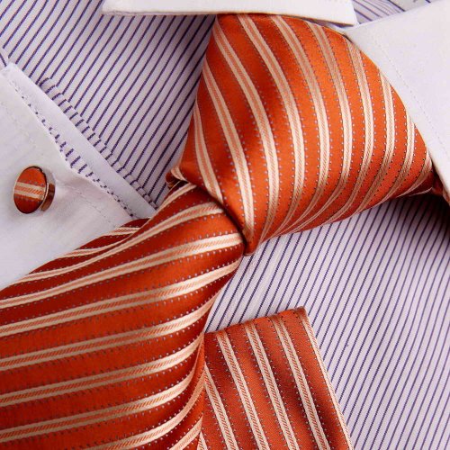 The Detailed Description of Orange Mens Fashion Tie Groomsman Gift Orange Red Stripes Woven Silk Tie Handkerchiefs Cufflinks Present Box Set Y&G Fashion Necktie Set H7016Features