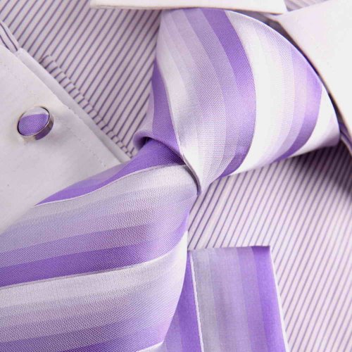 The Detailed Description of Purple Mens Tie Shop Medium Purple Stripes Woven Silk Neckie Handkerchiefs Cufflinks Gift Box Set Y&G Mens Necktie Set H8058Features