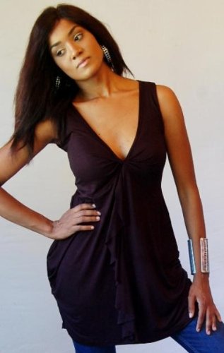It's a stretch top, but not your 'samo, samo' t-shirt. It has the stretchy, accommodating fit that we all love in a tee. It has the versatility we appreciate. And it has that certain casual chic we're always seeking.You guessed it, this is an Annie-designed top. So it's just a little bit more flattering, stylish and chic. She's given it a self-trimmed, and sleeveless. creates a sexy, flattering fit. Length is approximately mid-hip.Made up in a moderately stretchy rayon lycra, a sleek and smoothing fabric with a silky softness you'll love. Just right for wearing with all your casual attire. This is a basic top. A wardrobe foundation piece with a little something extra. Chic.