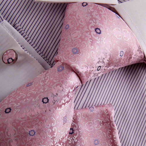 The Detailed Description of Pink Mens Warehouse Tie Gift Items Light Pink Patterned Woven Silk Tie Hanky Cufflinks Gift Box Set Y&G Relax Tie Set H7054Features