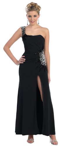 The Detailed Description of One Shoulder Prom Beaded Dress New Gown #874 (4, Black)Features