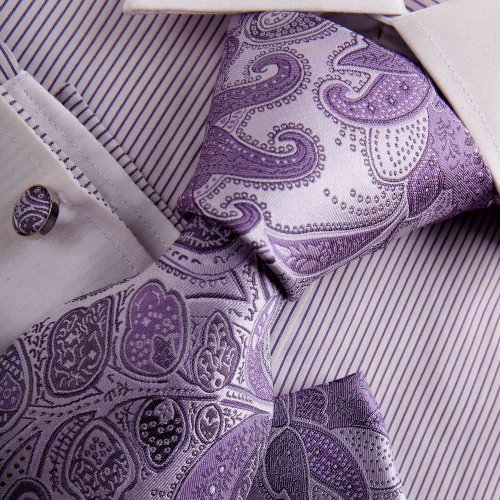 The Detailed Description of Purple Mens Tie Necktie For Marriage Darkmagenta Paisley Woven Silk Tie Hanky Cufflinks Gift Box Set Y&G Fashion Necktie Set H7066Features