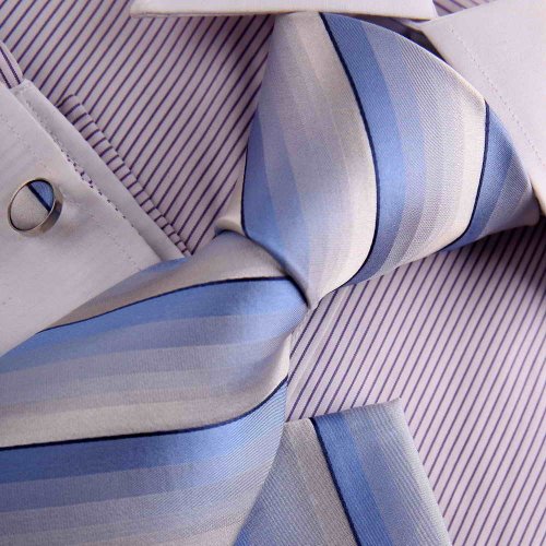 The Detailed Description of Blue mens silk tie cornflower blue Stripes Woven Silk Tie Hanky Cufflinks Present Box Set Y&G business Tie Set H8055Features
