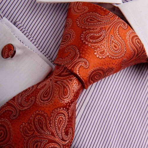 The Detailed Description of Orange Tie for Men Graduation Tomato Patterned Woven Silk Tie Cufflinks Present Box Set Y&G Perfect Tie Set A7043Features