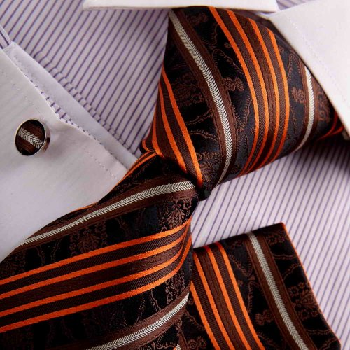 The Detailed Description of Orange Funties for Men Chocolate Stripes Woven Silk Neckie Hanky Cufflinks Gift Box Set Y&G Fantastic Necktie Set H8038Features