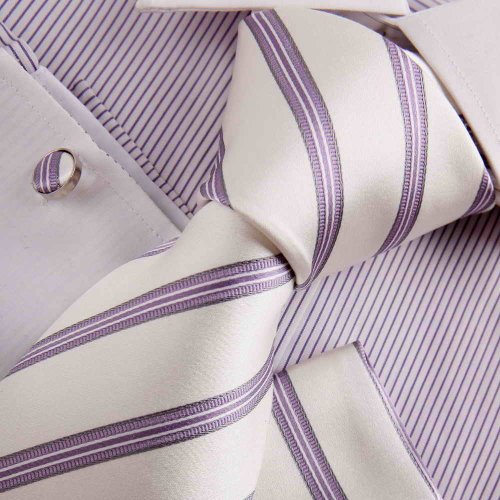 The Detailed Description of White Funties for Men White Stripes Woven Silk Tie Handkerchiefs Cufflinks Gift Box Set Y&G Excellent Necktie Set H8025Features