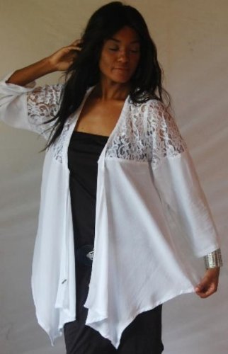 The Detailed Description of WHITE JACKET WRAP INSET LACE ANGLE HEM COIN TIES - FITS (ONE SIZE) - L 1X 2X - Z207S LOTUSTRADERSFeatures
