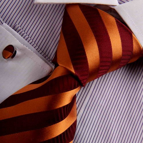 The Detailed Description of Orange Mens Ties Interview Dark Orange Stripes Woven Silk Neckie Cufflinks Gift Box Set Y&G Mens Necktie Set A7046Features