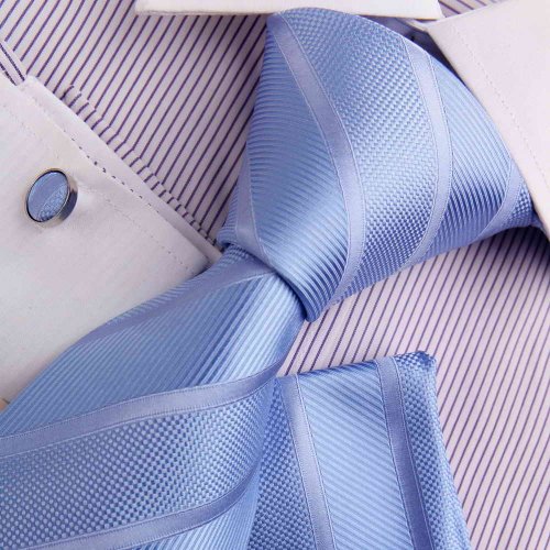 The Detailed Description of Blue Mens Tie Shop Gift Items Cornflower Blue Stripes Woven Silk Tie Hanky Cufflinks Present Box Set Y&G Business Tie Set H7020Features