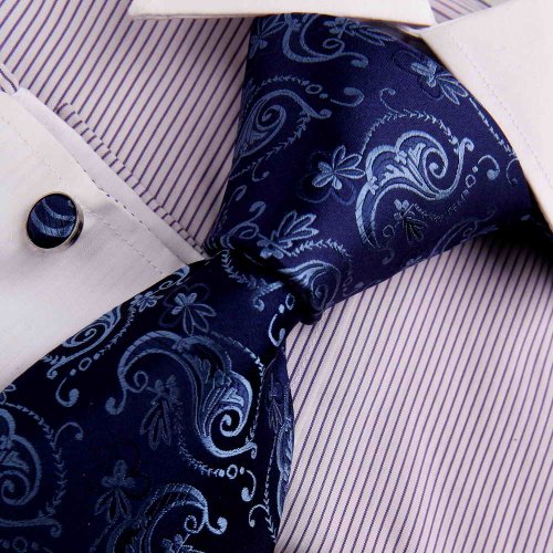 The Detailed Description of Blue Funties for Men School Navy Paisley Woven Silk Neckie Cufflinks Present Box Set Y&G Excellent Necktie Set A7012Features