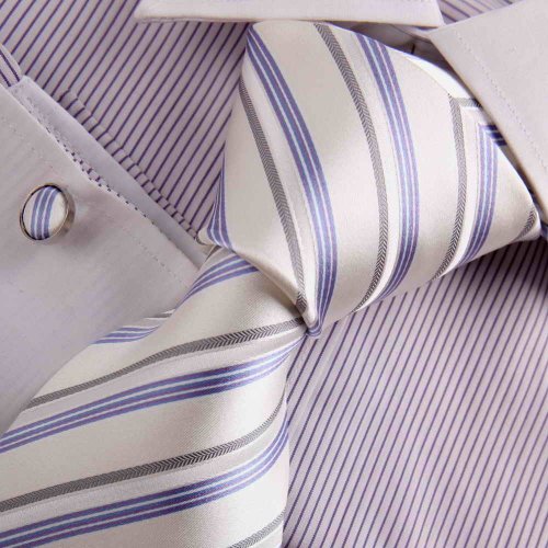 The Detailed Description of White Tie for Men White Stripes Woven Silk Neckie Cufflinks Gift Box Set Y&G Business Tie Set A8030Features