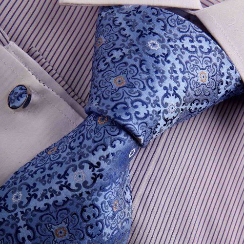 The Detailed Description of Blue Mens Silk Tie Club Royal Blue Patterned Woven Silk Tie Cufflinks Present Box Set Y&G Business Tie Set A7055Features